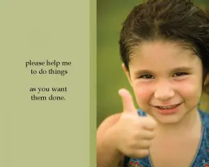 Then, I asked her if she would like for me to read her a book … that I had a wonderful book with beautiful pictures. She came closer and watched as I opened the cover. I pointed to a picture of a child holding a thumbs-up and said, “Can you do that, Luci?” She mirrored the photo with her thumb up. I pointed to a child holding up their hand and said, “Can you do that, Luci?” and she mirrored the photo. I turned to a page where the little boy is playing with the water fountain and she opened her mouth several times as if she were trying to take a drink. As I asked her questions, she started responding with words—words that I’ve never heard her speak, and I’ve known her since birth. It was a precious time with her.